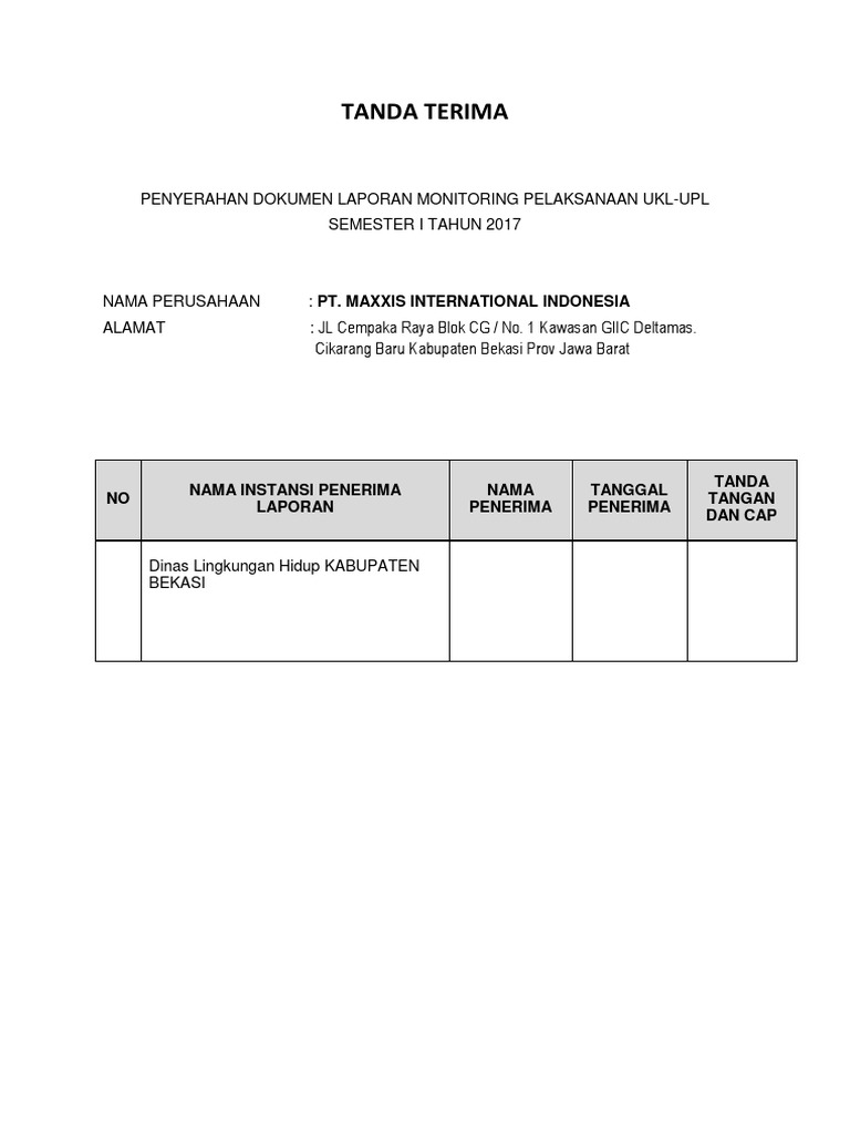 Tanda terima perpanjangan iujk pt portal sejati utama pdf. Bersama ini kami kirimkan barang / dokumen dengan rincian sebagai berikut jumlah. Dokumen pelaksanaan ukl upl bahan galian batuan pt. Tanda tangan & stempel : Tanda terima dokumentanda terima ini dibuat di jl.